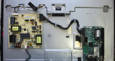 - На дисплее нет изображения ― при включении ТВ экран остается черным. При этом звук транслируется так же, как обычно. Такой симптом говорит о поломке подсветки. Перегорели светодиоды, которые необходимо заменить. Кроме того, могла сломаться плата T-cone. В этом случае ее меняют.